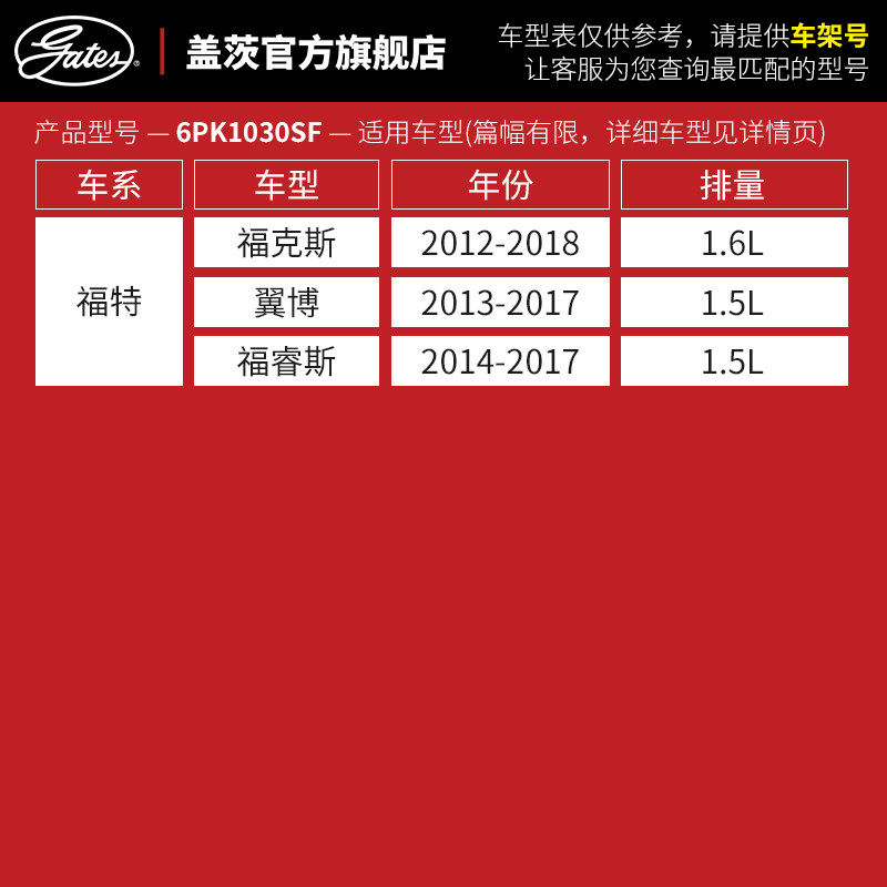 Gates Adapt Ford Fox Foowise Swing Bed Engine Multiwedge with Dynamo Belt 6PK1030SF