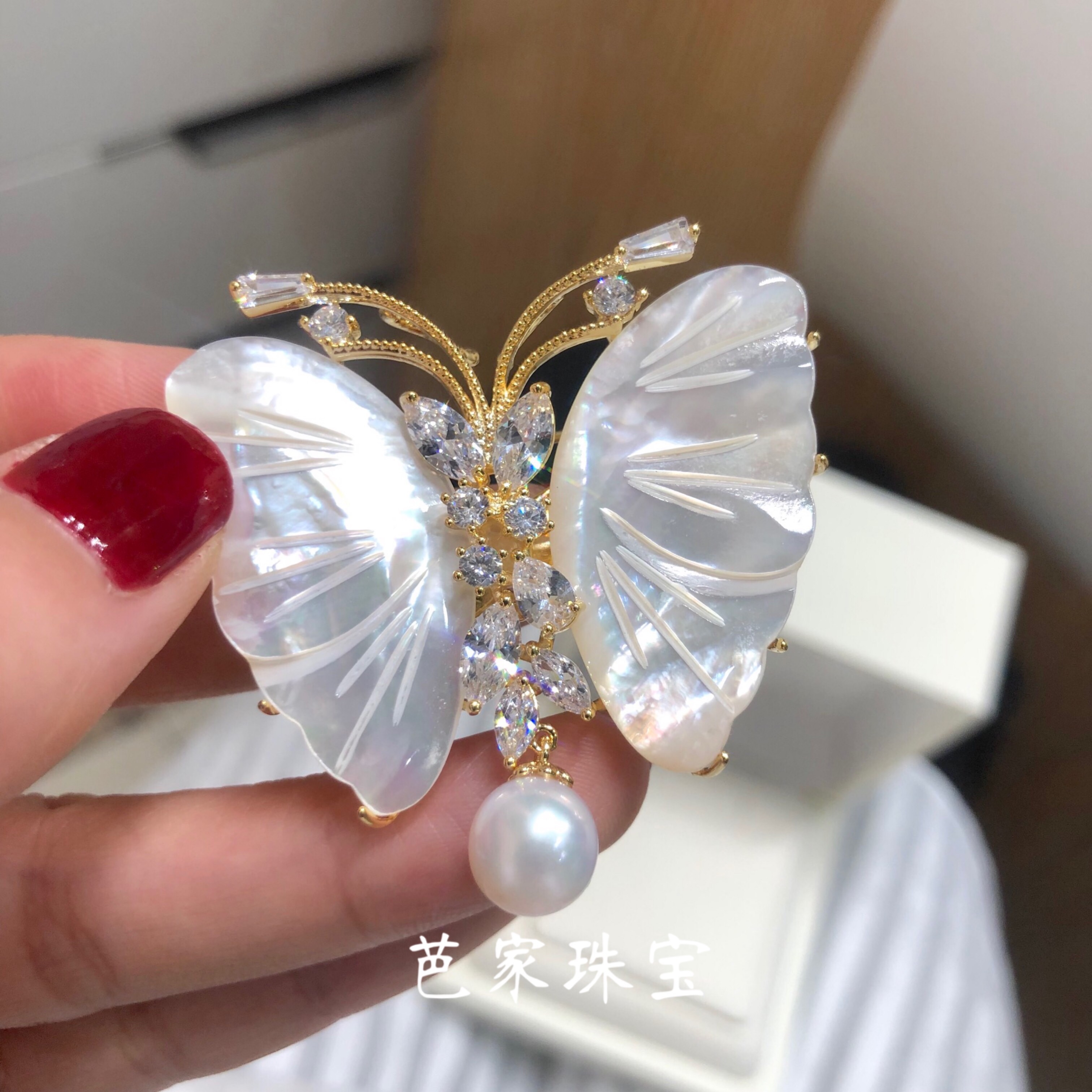 Spot natural Sichuan fritillary white moon light Japanese akoya sea water pearl butterfly brooch