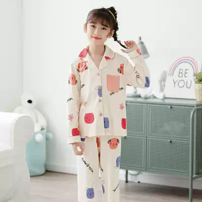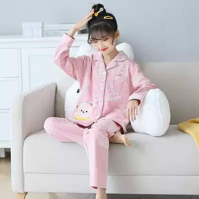 Girls' pajamas spring and autumn cotton girls in big children thin autumn cotton Princess cute children's home clothing set