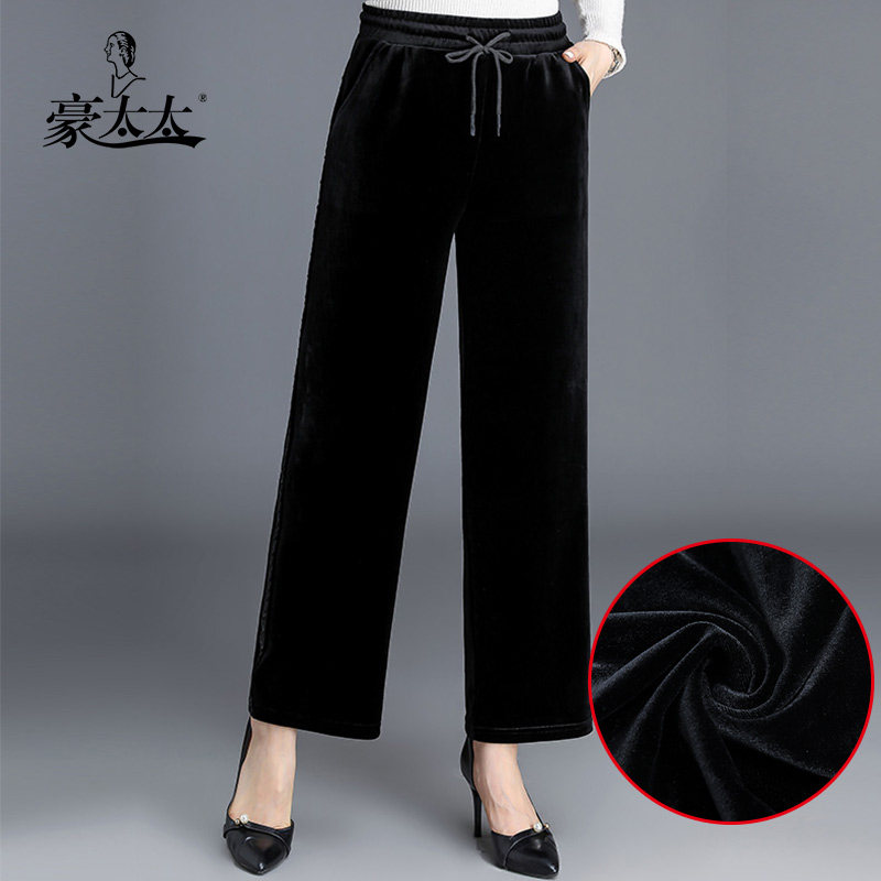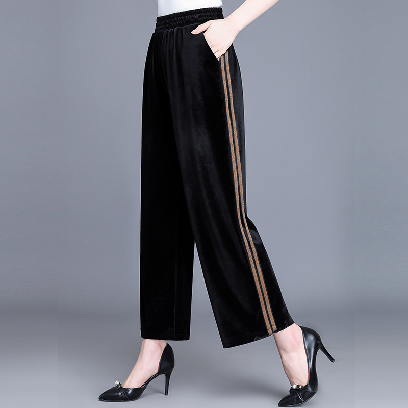 Golden velvet mom pants thin middle-aged women's pants loose pants wear sports pants middle-aged wide-legged pants spring and autumn