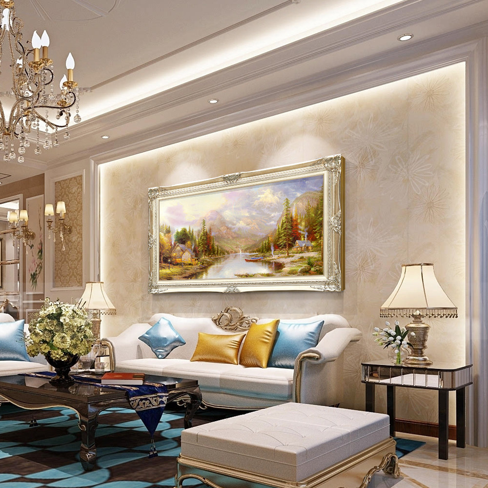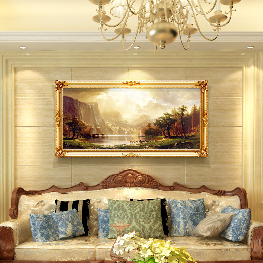 Living room decoration painting sofa Background wall hanging painting Atmosphere European-style wall decoration Retro American frescoed landscape oil painting