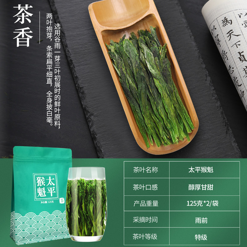 Handmade pinching Taiping Taiping Monkey Quit 2022 New tea special class Monkey green tea Anhui tea 125g * 2 (Home Tea)