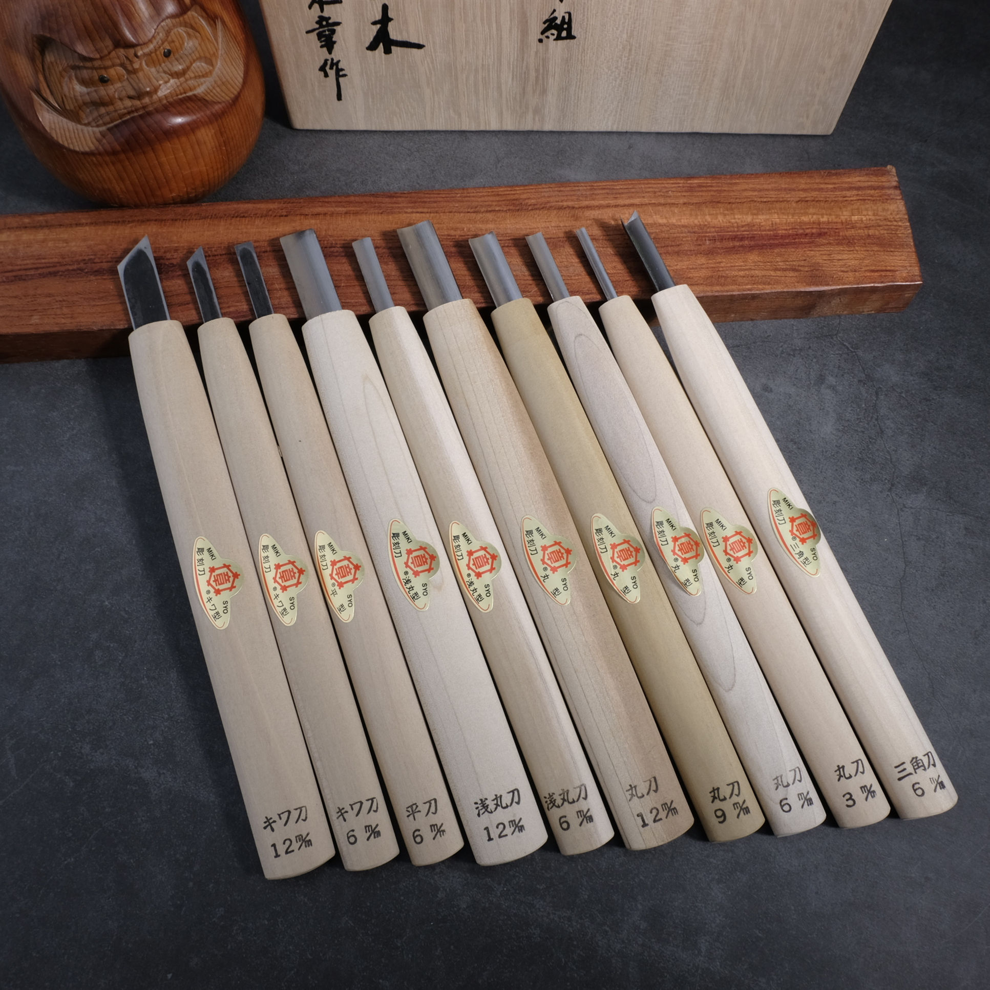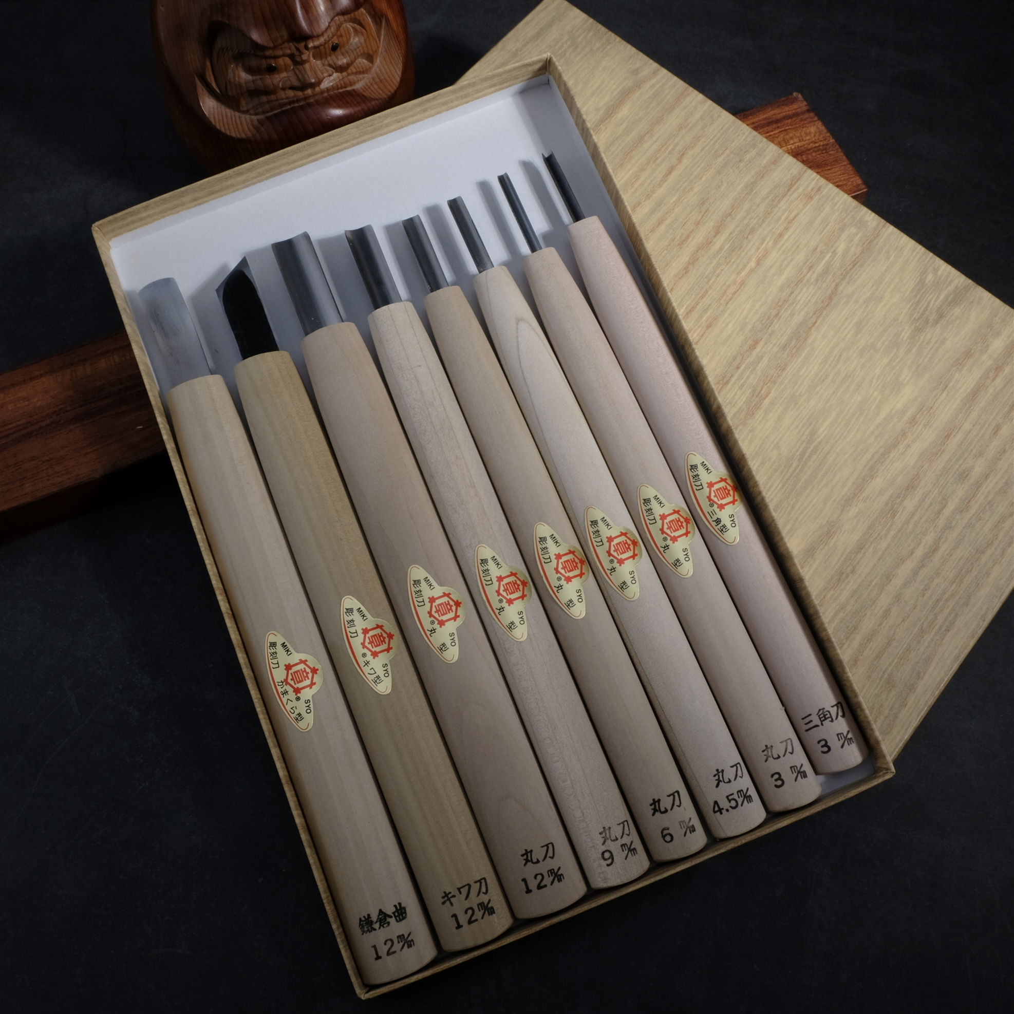 Japan Miki chapter carving knife set Marudaira round triangle knife Engraving print knife Super green paper steel trimming knife