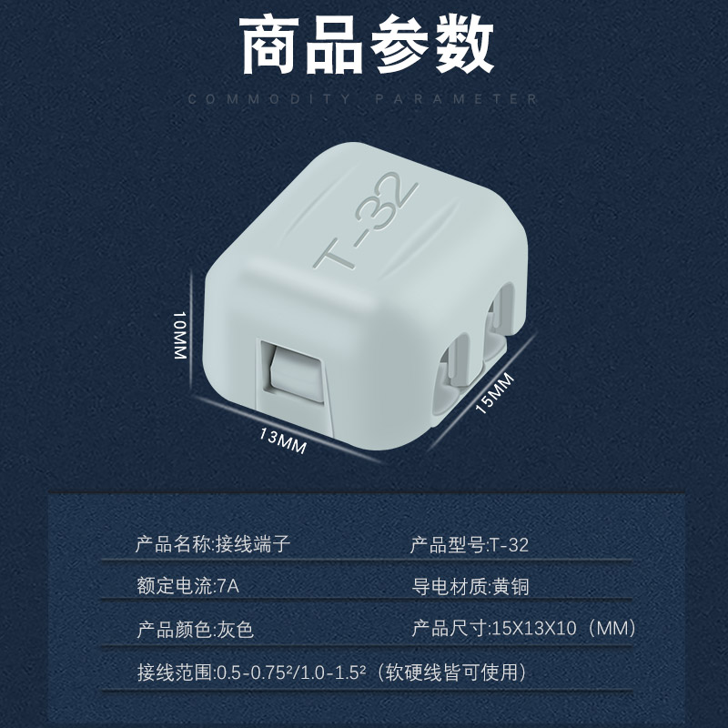 Meme-type T-break free wire Quick wiring Terminal Junction Clip Wire Instrumental Current 7a 7a 0 75-1 5 Squared