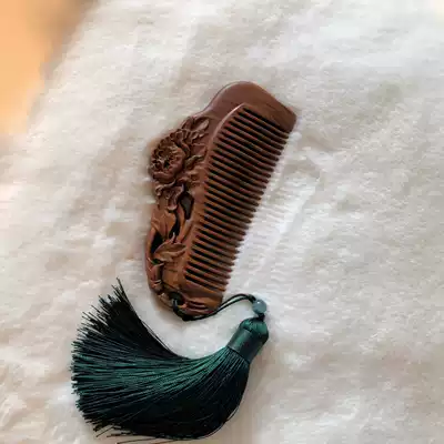 Peony new ingenuity red beautiful flowers blooming rich green sandalwood carved semi-handmade acid branches gift anti-static wooden comb