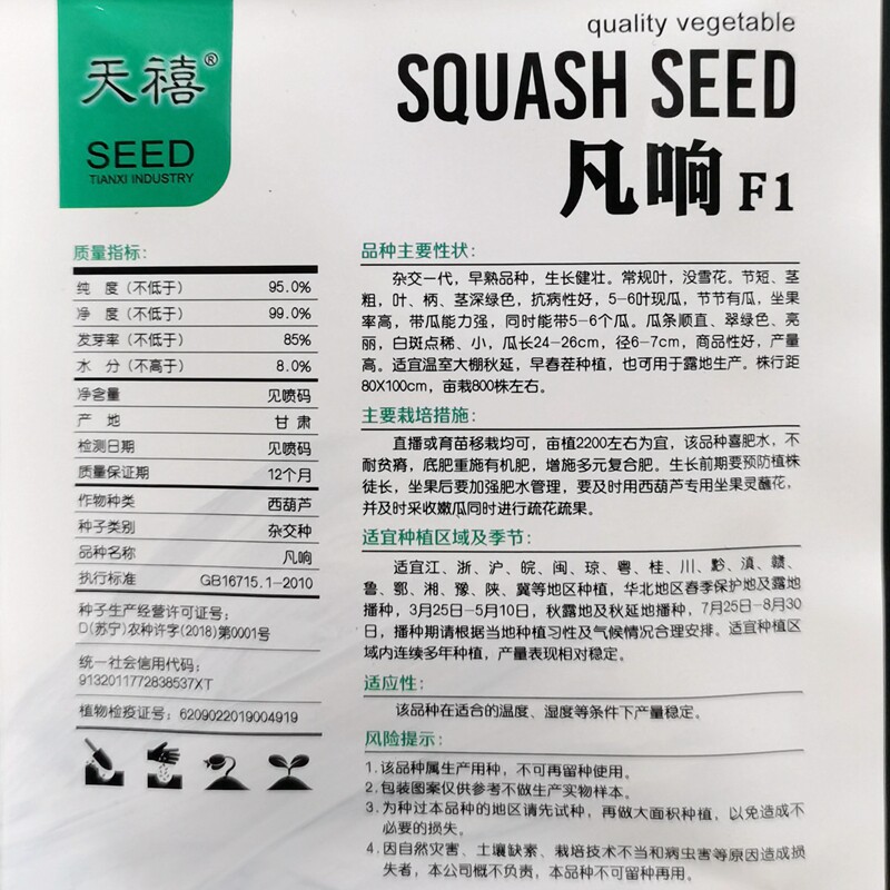 Tianxi fanxiang zucchini seed hybrid generation angle melon vegetable melon green melon raw melon melon small melon vegetable seed 10g 80 grains