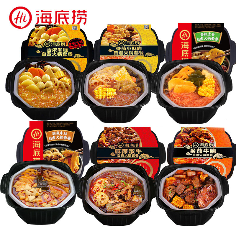 Seabed bailing self-cooking hot pot self-thermal sloth with small hot pot celerivos red ready-to-use spicy hot 3 meat 3 vegetarian 6 boxed