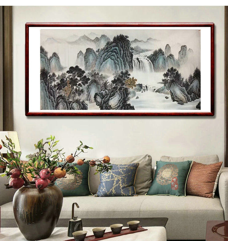 Hand drawing true track Four feet Banners Imitation Ancient Landscape Country Painting China Wind Greens Green Ink Painting Heart Office Living Room Decoration