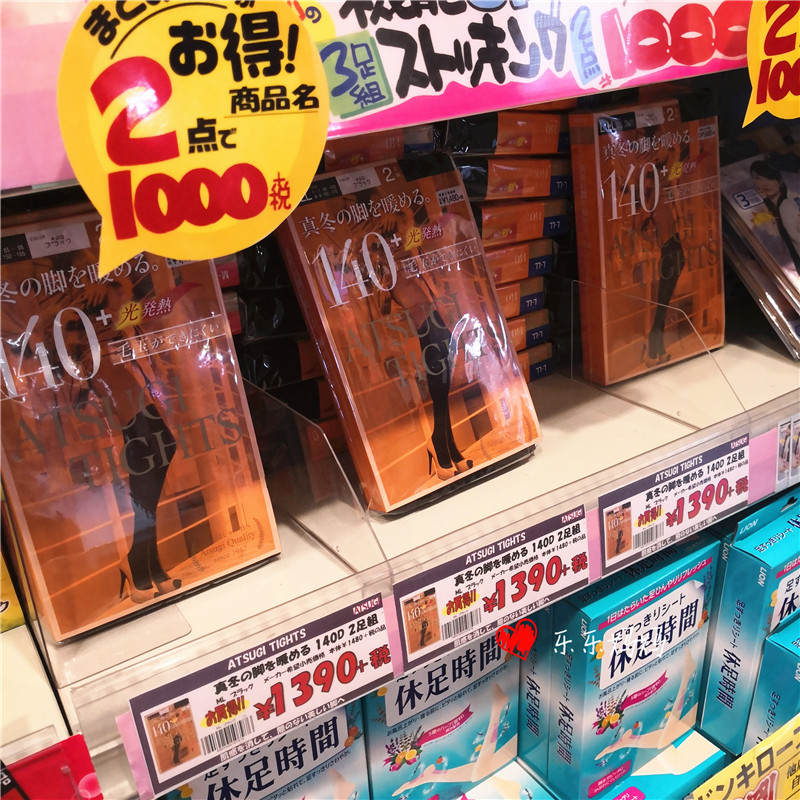 Japan ATSUGI Thick Wooden Pants Socks Spring Autumn Season Winter Light Heat-generating Silk Stockings Pair of Pants Socks 2 Double