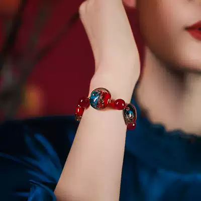 Phoenix Nirvana original hand female niche design hand jewelry crystal jewelry ethnic style retro golden sand glazed hand string