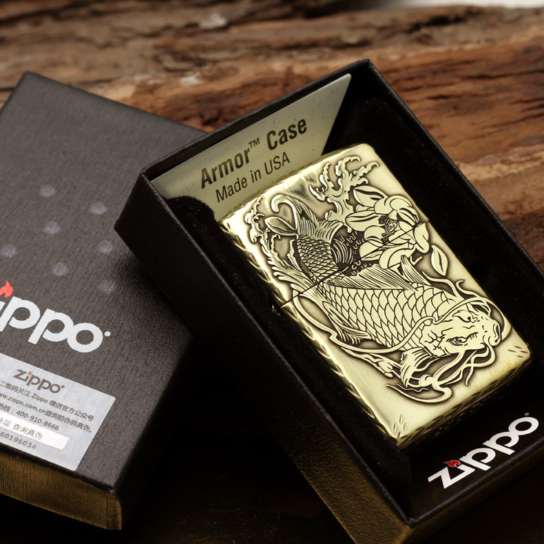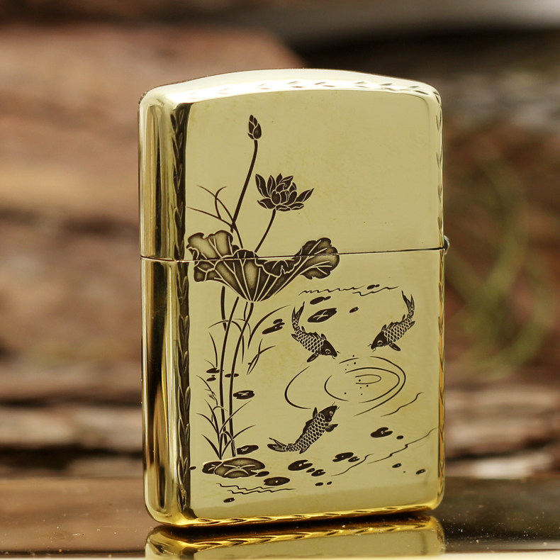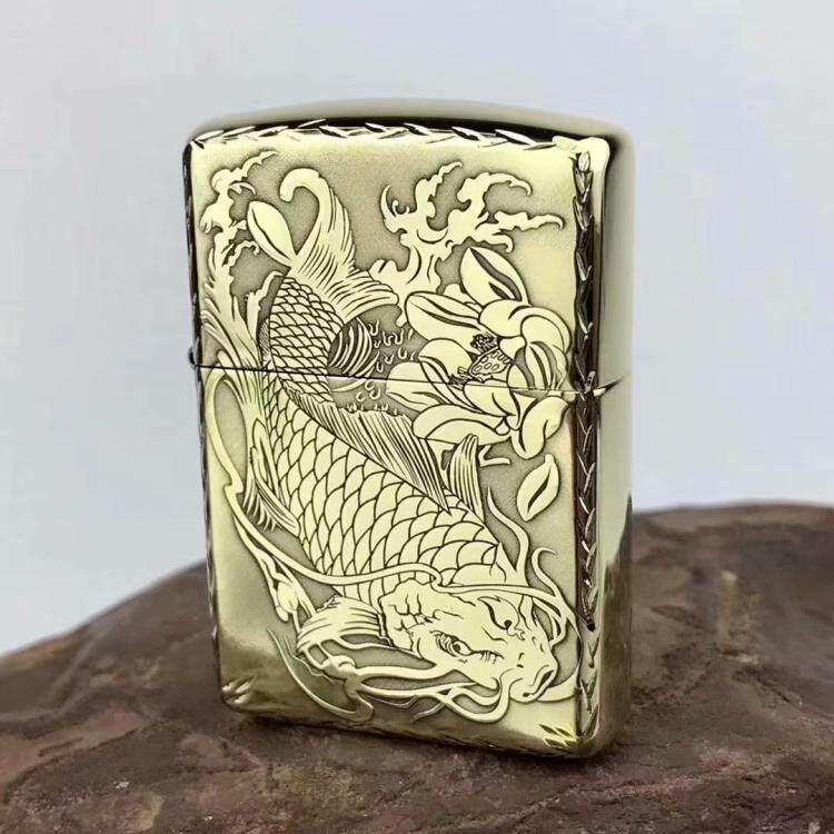 Original Loaded Zippo Lighter Lotus Carp Pure Copper Armor Engraving Rich And Expensive Fish Year Over Year Business Good Manners