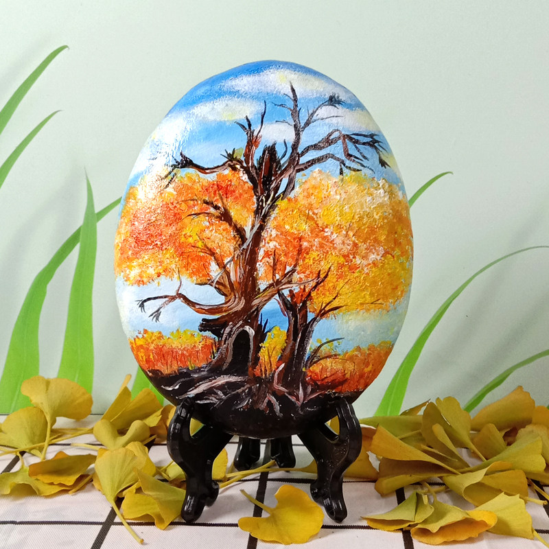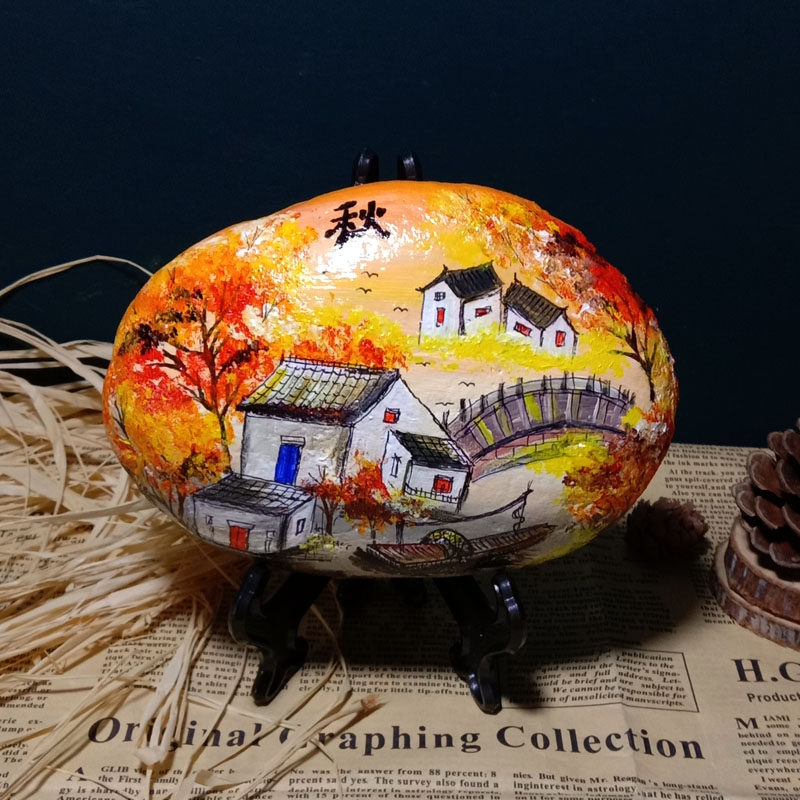 Painted stone painting finished family portrait cartoon landscape pure hand-painted children's birthday gift diy painting pressure book Stone