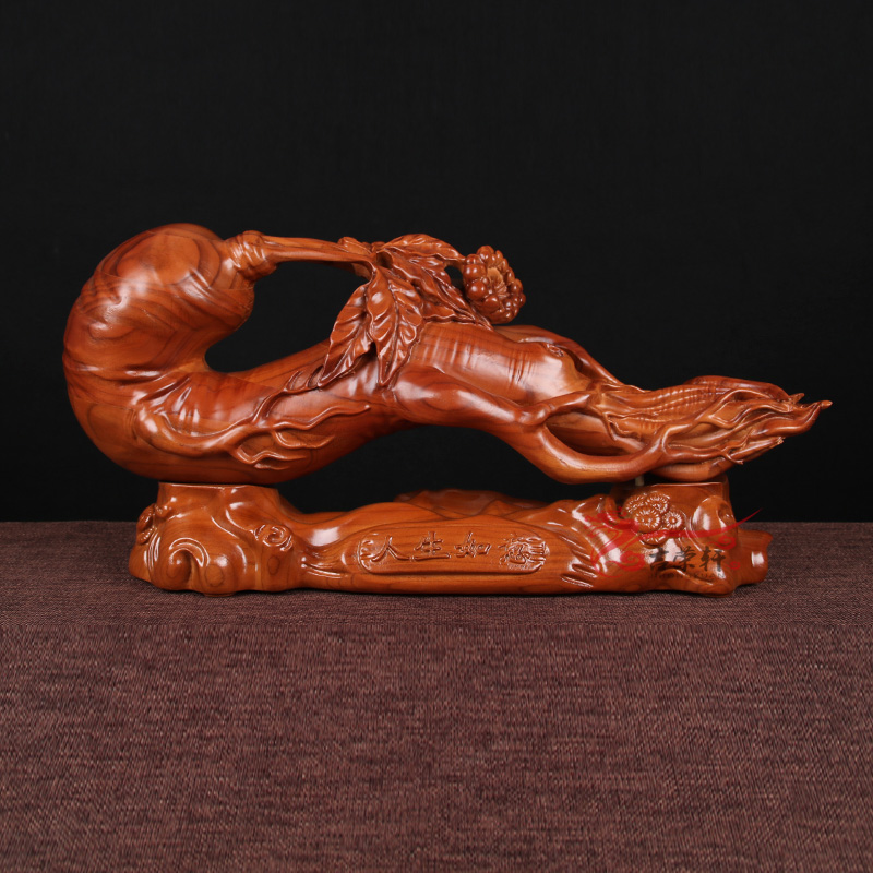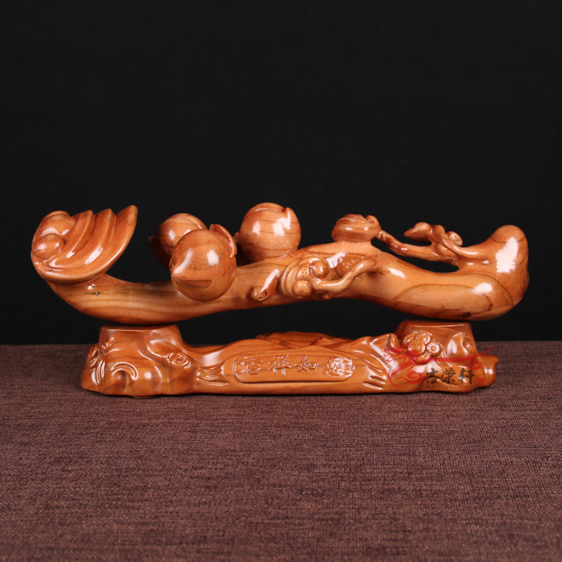 Ji Rongxuan auspicious Ruyi with peach wood Ruyi Xuan Kanguan Living room Office Elephant Jixiang Wood Carved Furnishing Decoration