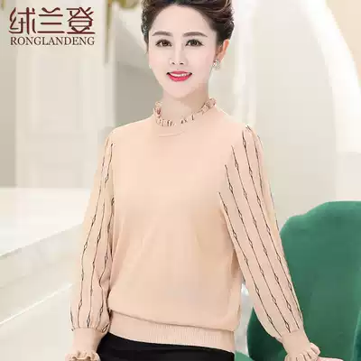 Middle-aged woman mother dress sha xiu T-SHIRT blouse middle-aged women's base shirt chun qiu zhuang chiffon shirt fashion coat
