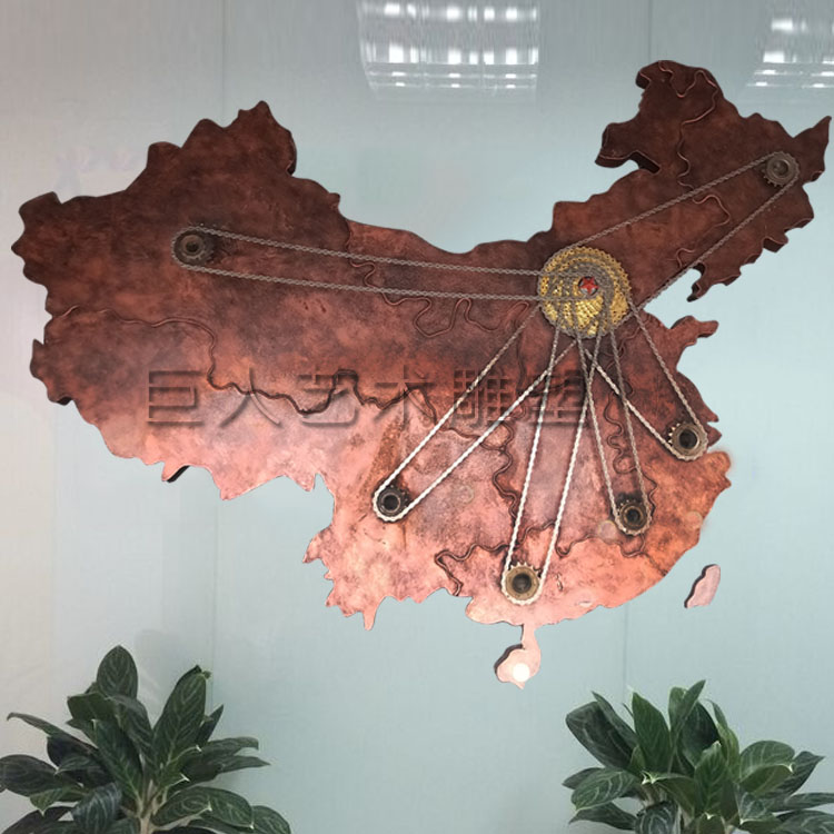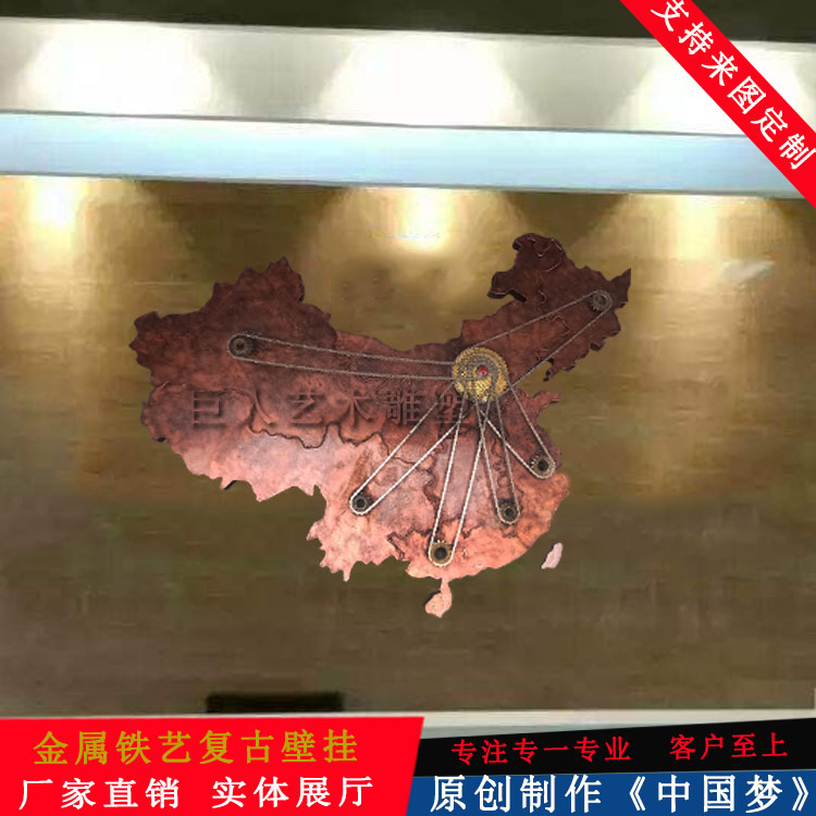 Modern Hotel Club Exhibition Hall background wall decoration Chinese plate wall decoration creative metal industry retro style
