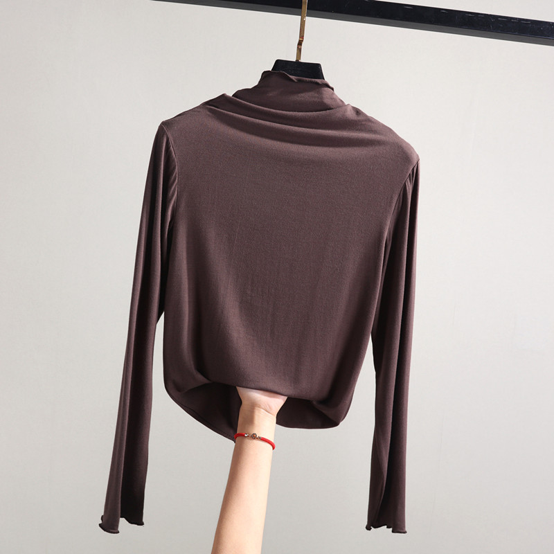 2022 new half turtleneck long-sleeved T-shirt women's summer and spring slim fit inner modal bottoming shirt fungus edge thin top