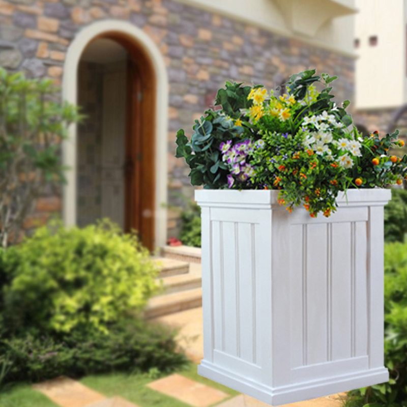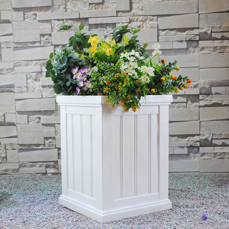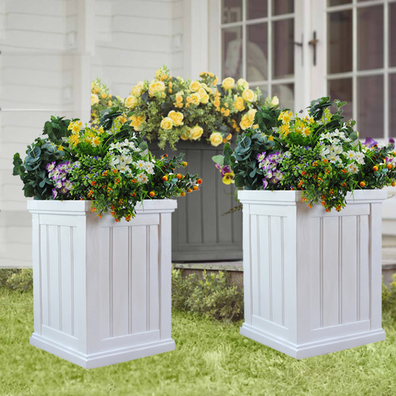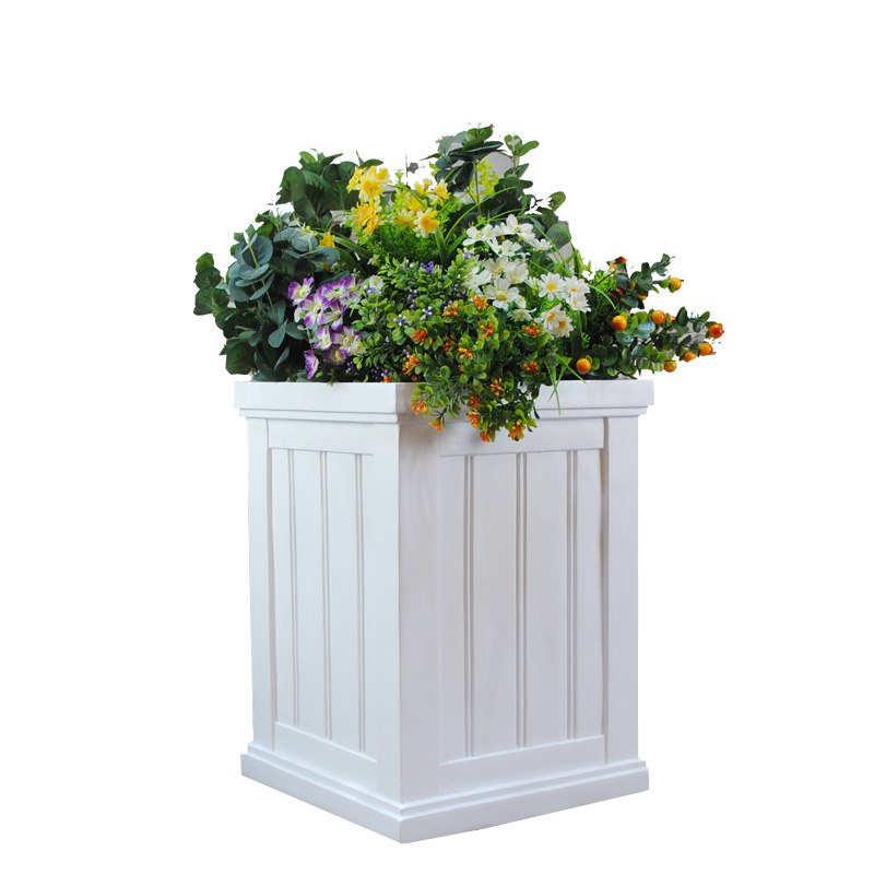 European flowerpot white glass fiber villa door outdoor imitation wood decoration floor simple square flower box new product