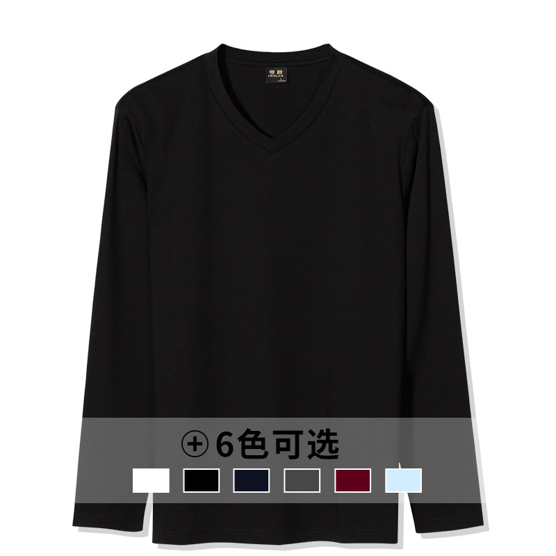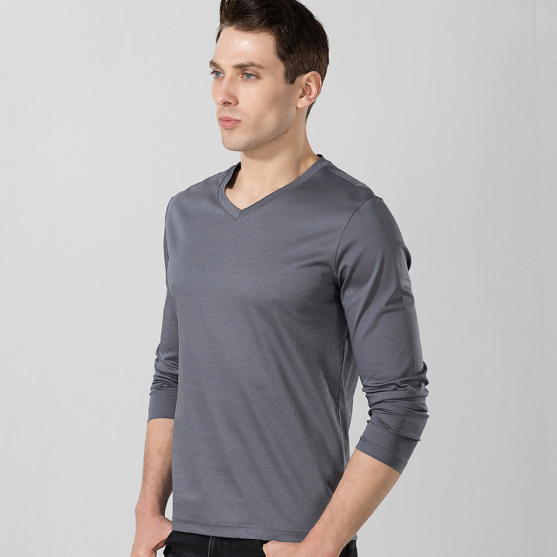 Silk light cotton T-shirt male V collar pure cotton long sleeve T-shirt men's pure color full cotton spring autumn tv undershirt male clothing blouse