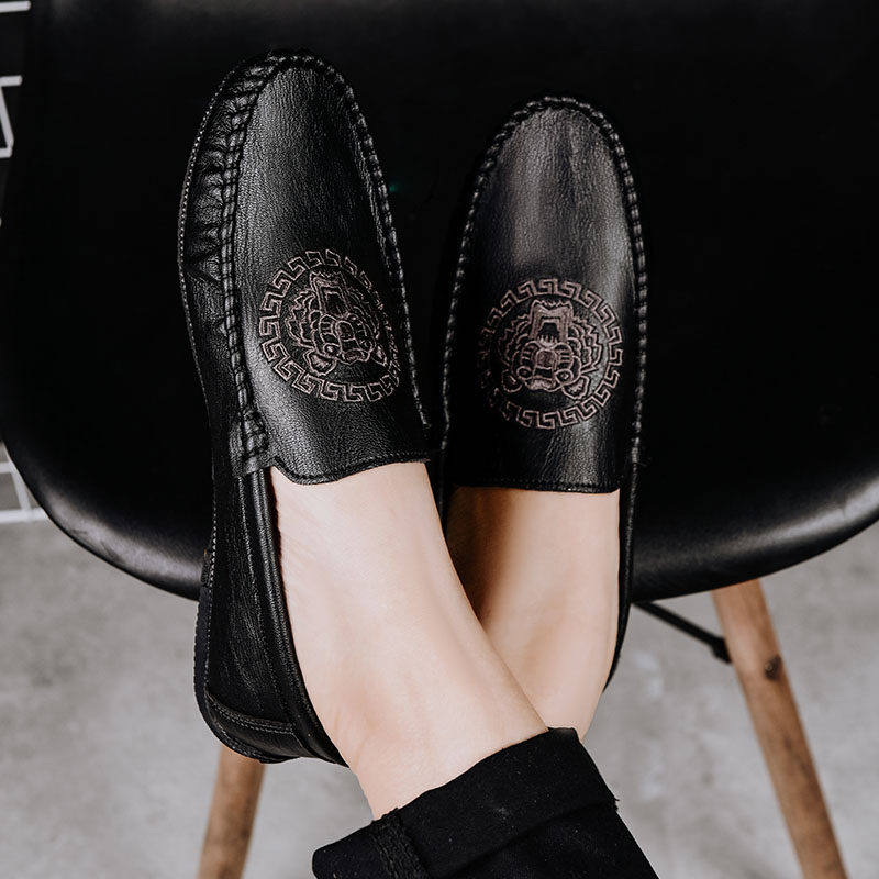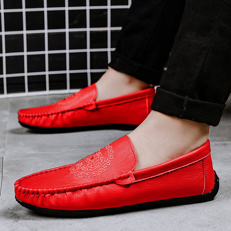 Doudou shoes men's shoes spring lazy leather shoes men's casual shoes men's Korean version of the trend driving shoes men's trendy shoes England