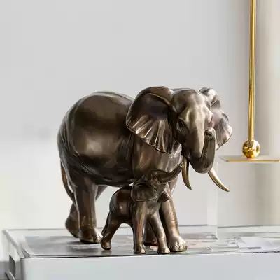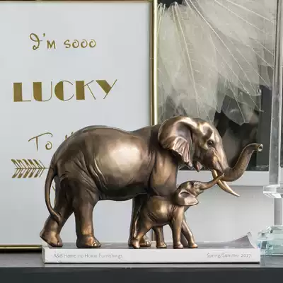 European-style copper gold mother and son elephant ornaments Resin crafts Home living room town house decorations Housewarming new home gifts