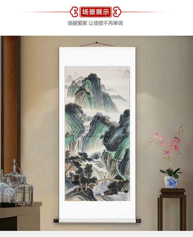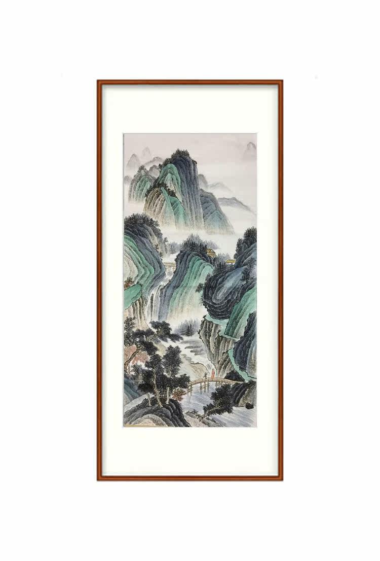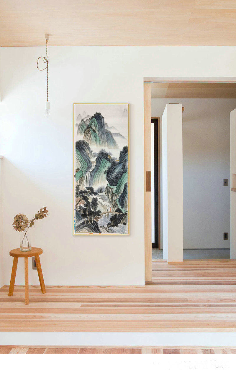 Hand-painted four-foot middle hall painting heart antique landscape Chinese painting Chinese ink green Chinese painting porch aisle study decoration