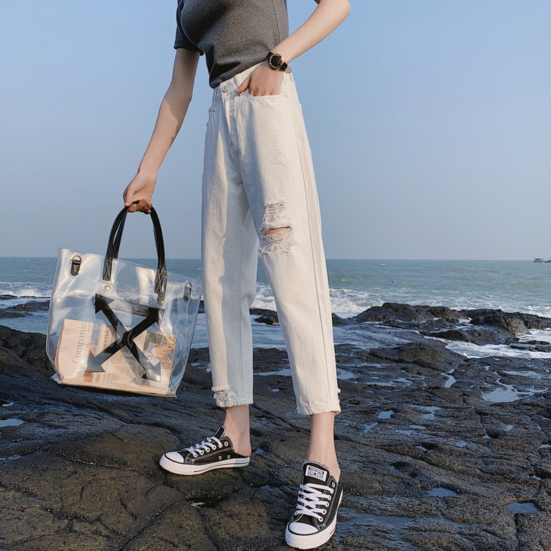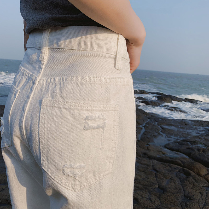 White Broken Cave Hallen Jeans Woman 2023 new spring summer with high waist loose 90% radish old daddy pants-Taobao