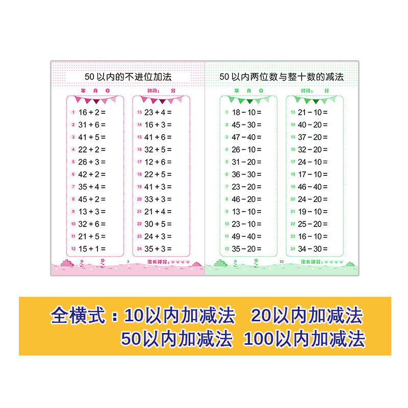 Children's arithmetic problem horizontal vertical decomposition oral heart calculation red this young bridge 10 20100 plus and minus
