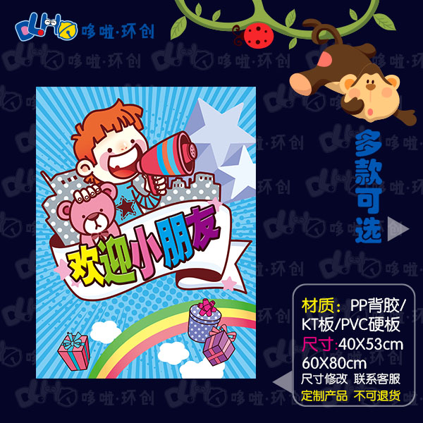 The new semester of kindergarten welcomes the opening of the school to welcome the poster exhibition board of the children to greet the banners and paintings