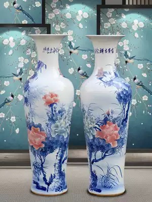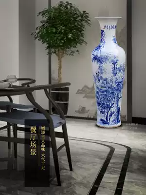 Jingdezhen ceramic hand-painted blue and white porcelain floor-to-ceiling large vase flower arrangement New Chinese living room decoration ornaments large extra large