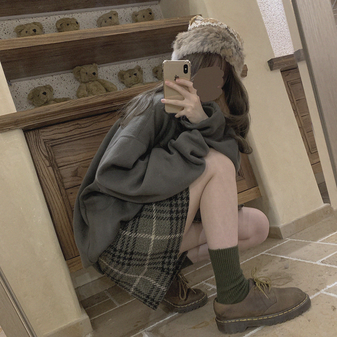 Vintage retro girl large plaid A-line skirt H
