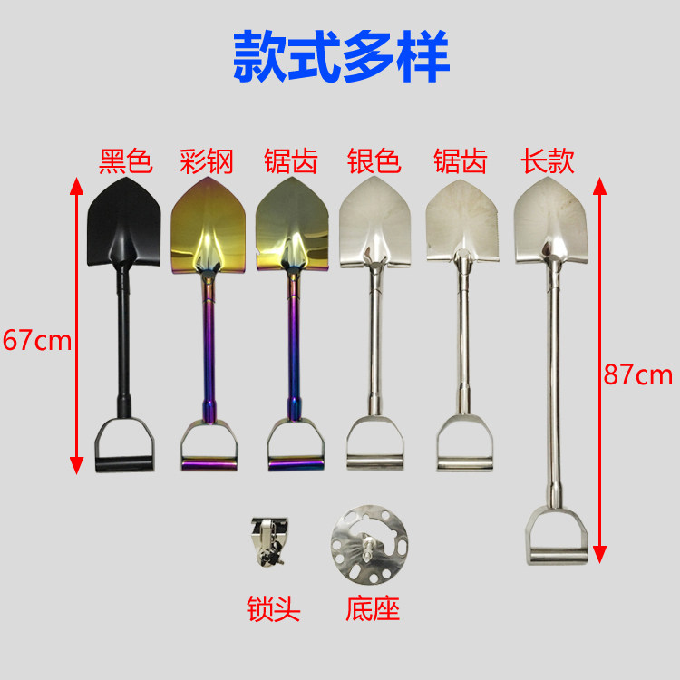 A set of silver 67cm short shovel lock base set of black 67cm short shovel lock base set of silver 67cm serrated shovel lock base set of silver 79cm long shovel lock base one set