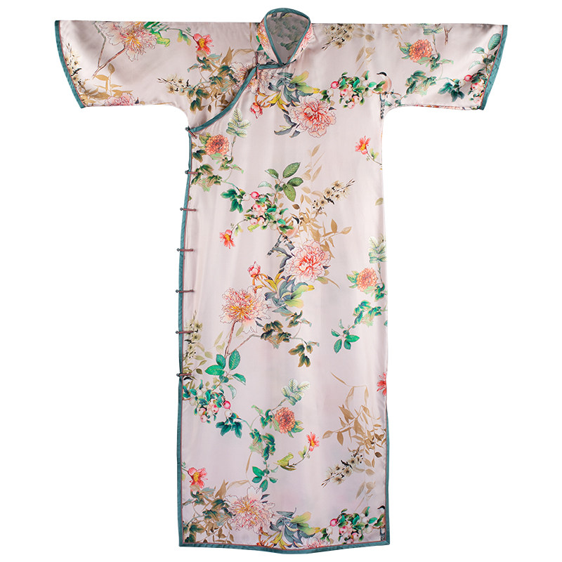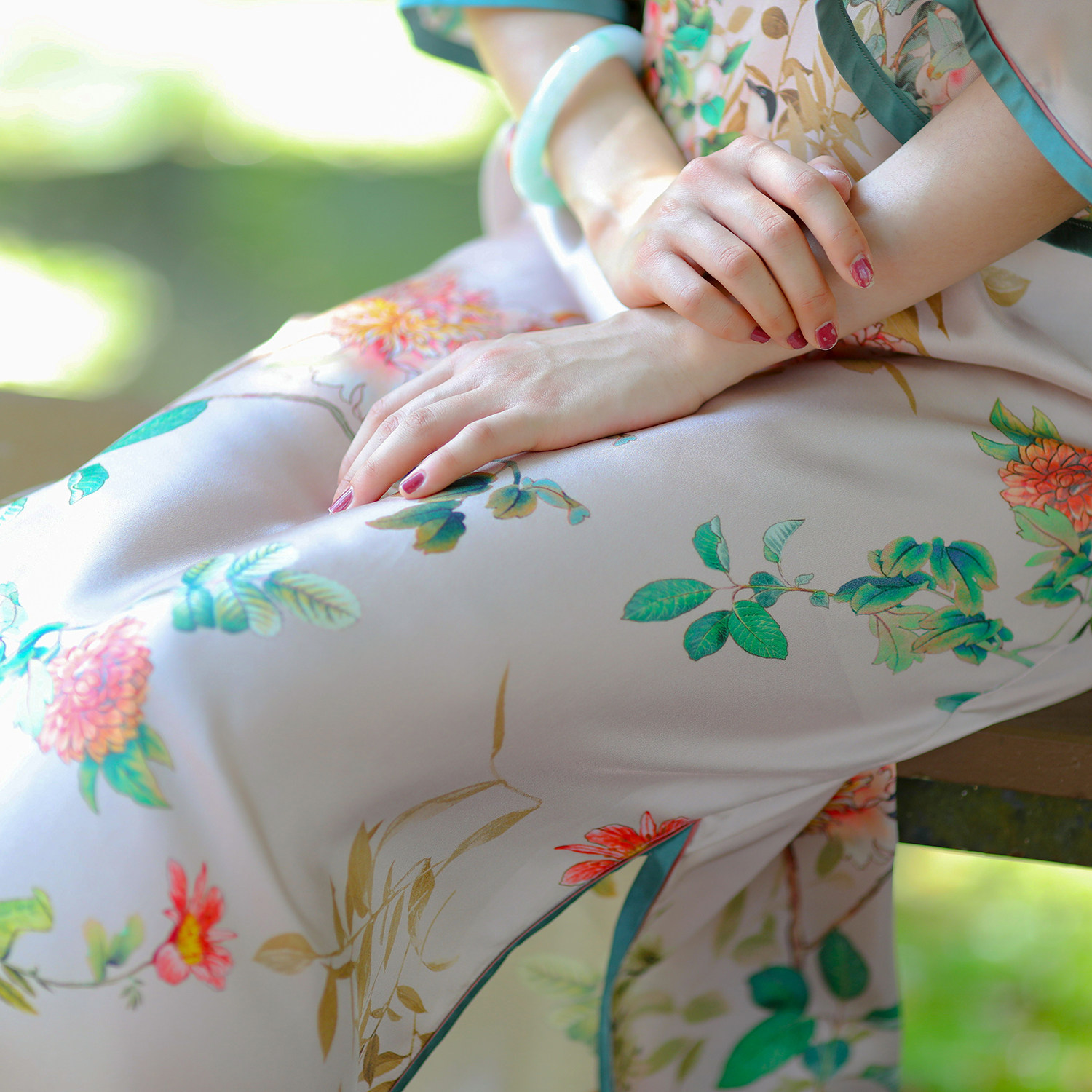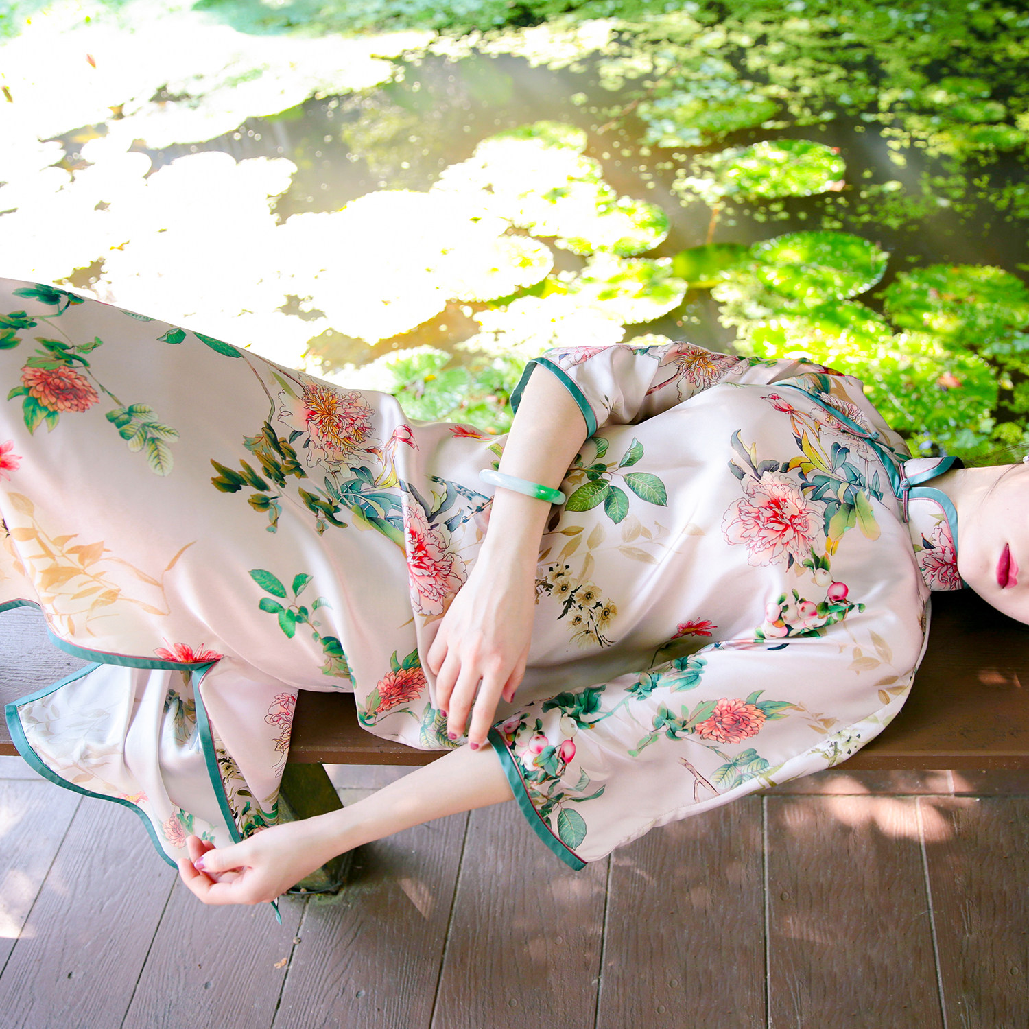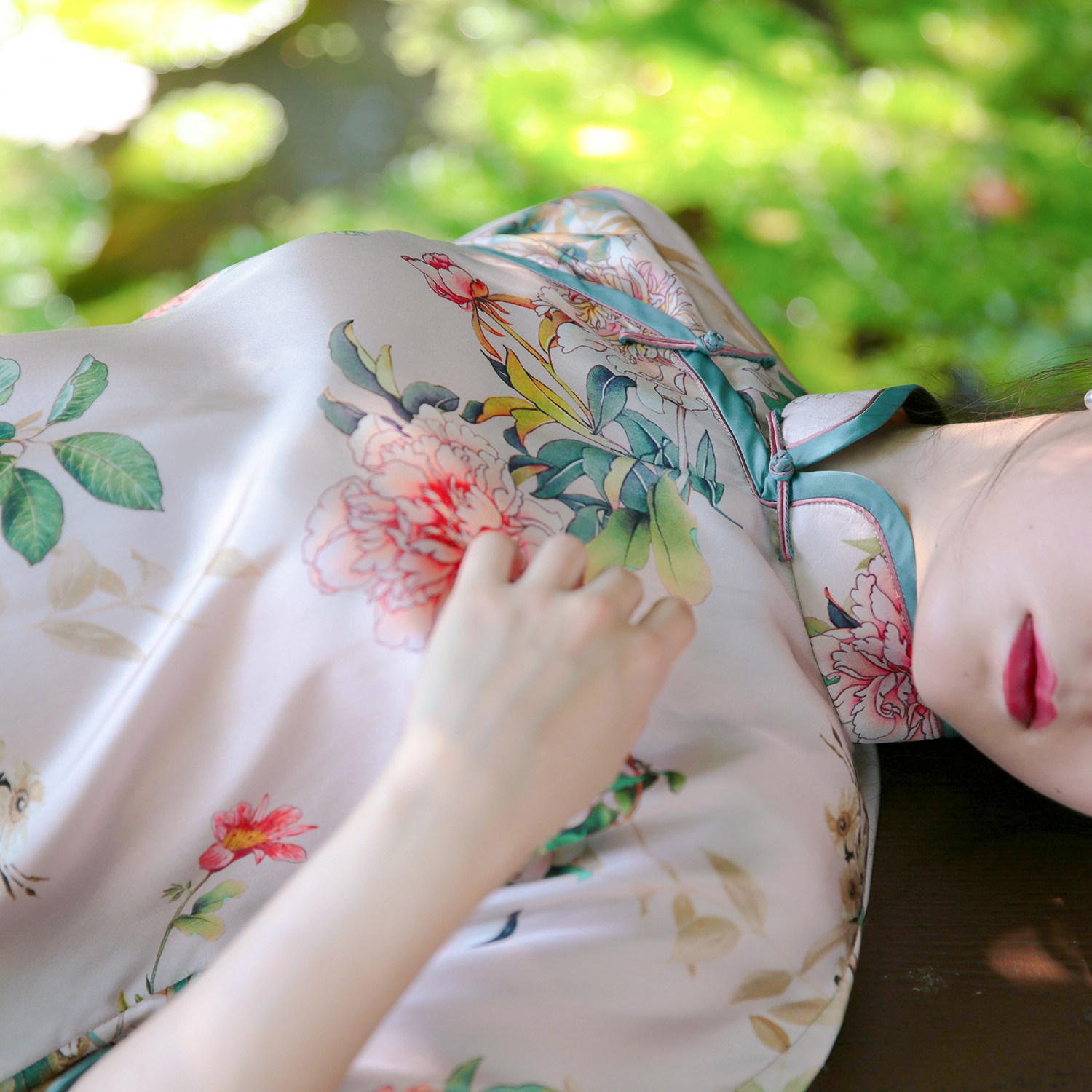Spring Sleeping -- Spring Summer One Town Wind Wool Chinese Style Retro of the Republic of China The Authentic Silk Pink Printed Upside Down Big Sleeves No Province Qipao