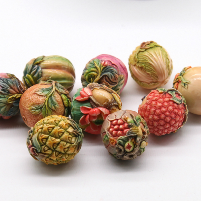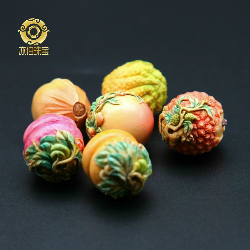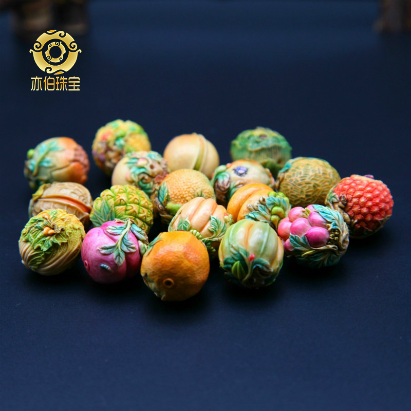 Also natural Mengmeng Mammoth ivory engraving Painted Smoky Lotus Fruits Lotus Fruit Lotus Top Beads Multi-Treasure Lock Bone Chain