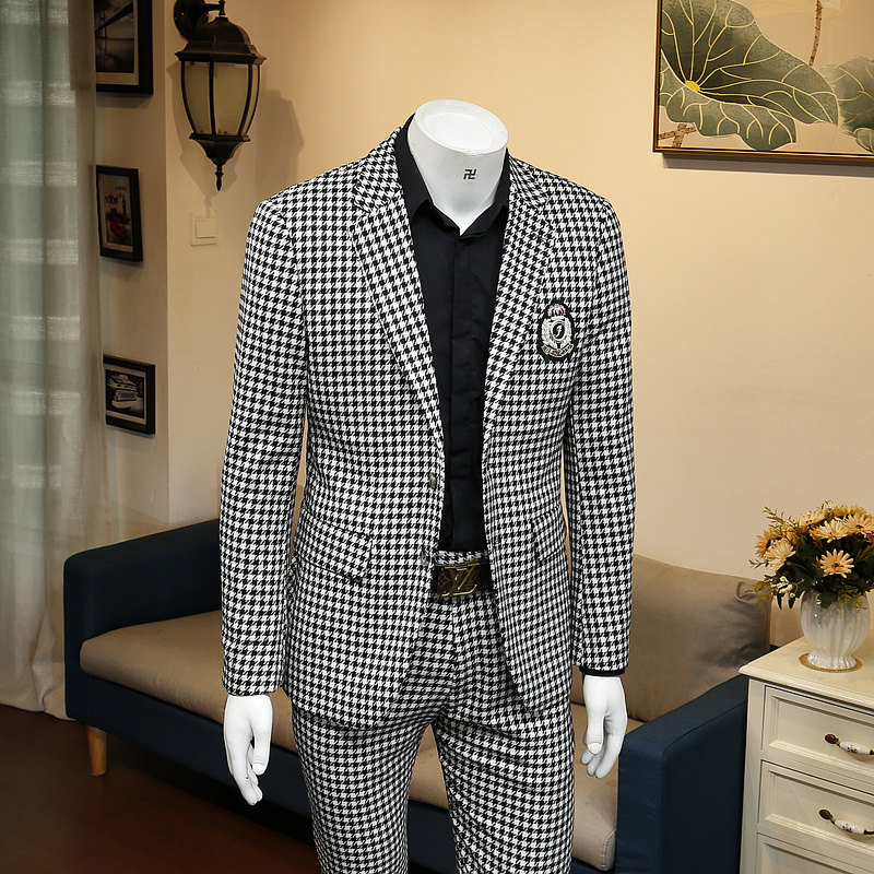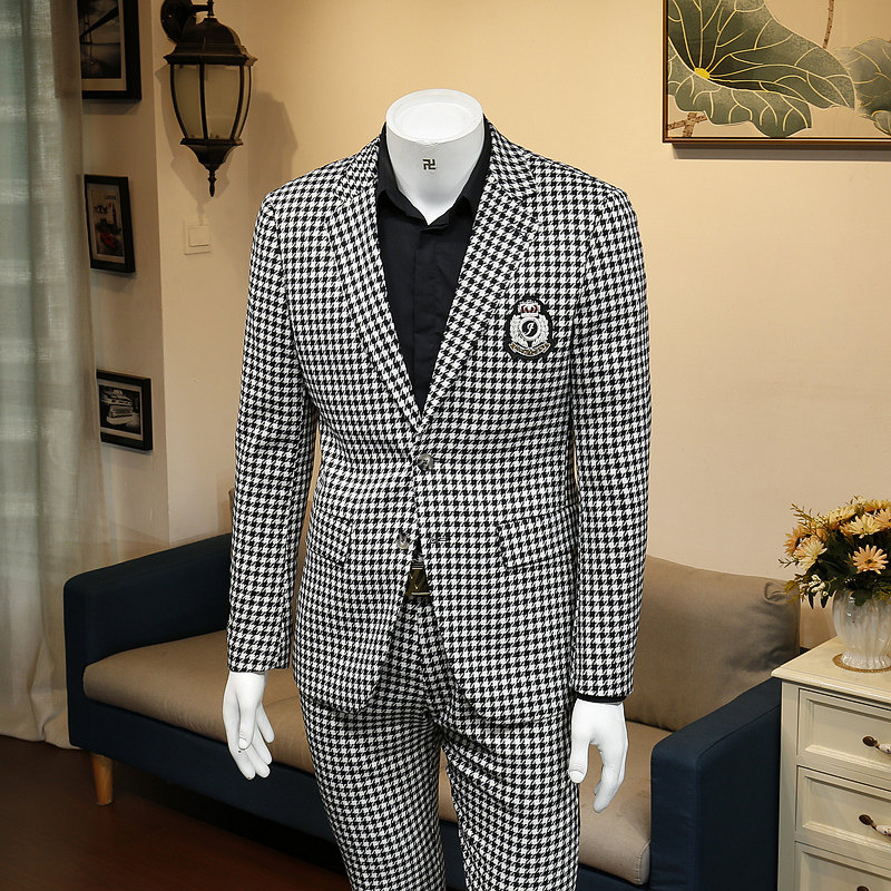 136524 Winter new Korean version of the body Business Fashion Trends Handsome chicks Thousand Birds G Casual West Suit Men's Coats