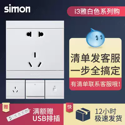 Simon i3 series switch socket Xueshan white two three plug 5 five hole 86 type concealed wall panel household USB