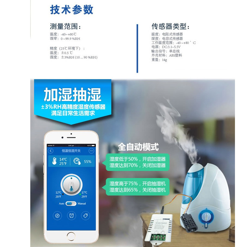 Temperature and humidity cell phone APP remote monitoring WIFI remote control switch greenhouse tank timing cycle automatic controller