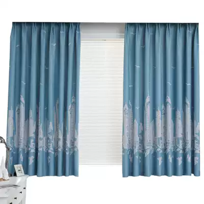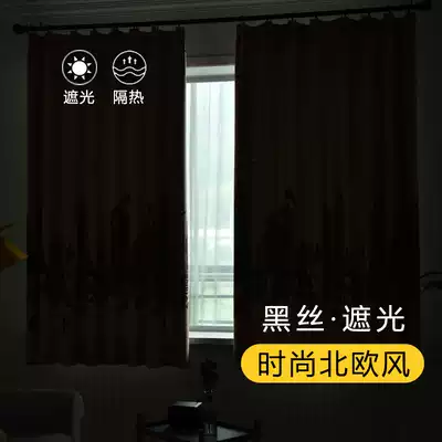 Blackout curtains finished cloth Bedroom dormitory balcony net red short curtains thickened free perforation installation Nordic simplicity