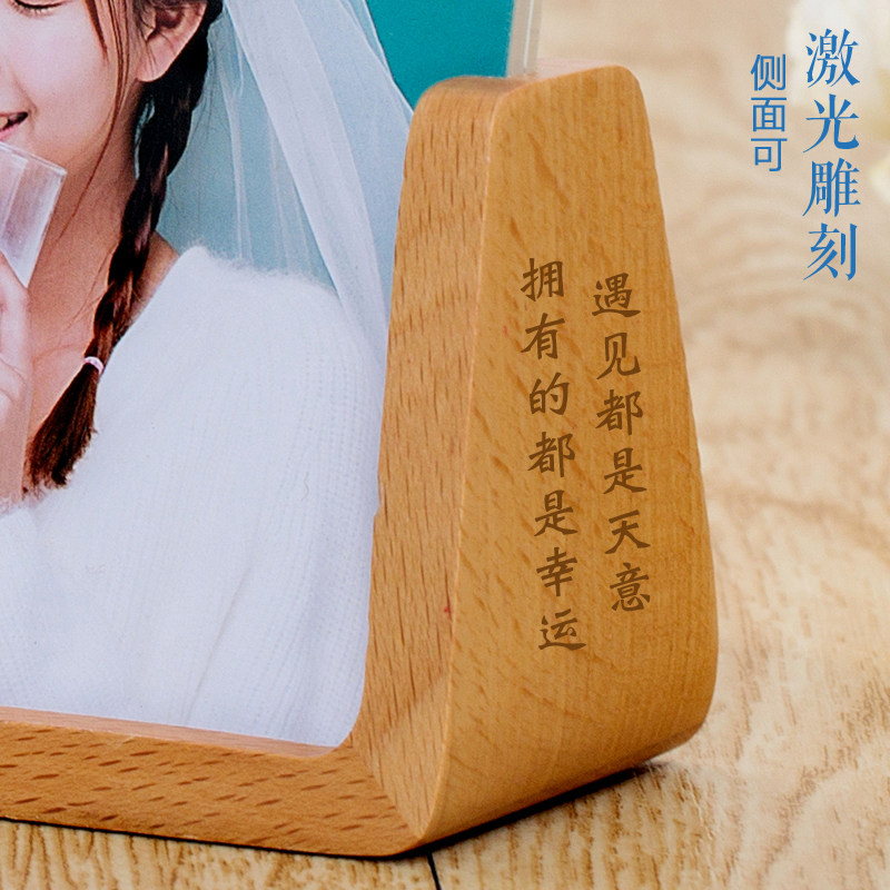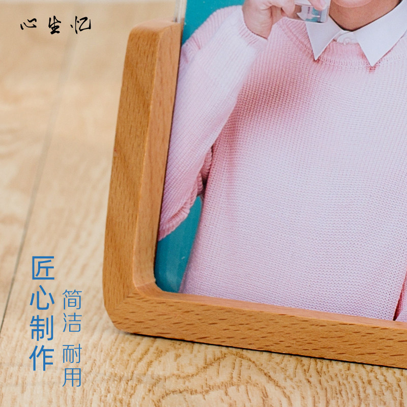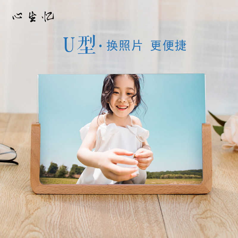 Creative U-shaped beech photo frame tablewashed photo solid wood album custom logo engraved acrylic photo frame