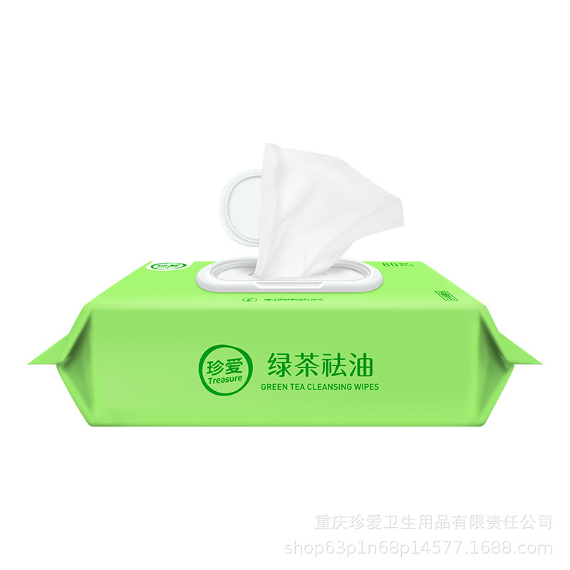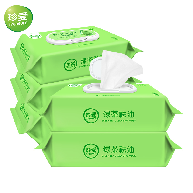 Cherish green tea oil-removing cleansing wipes 80 pieces of 5 large packs of extractable men's face, oil and sweat wipes for household use