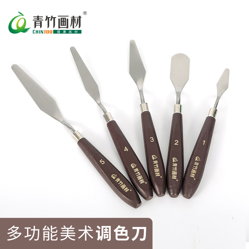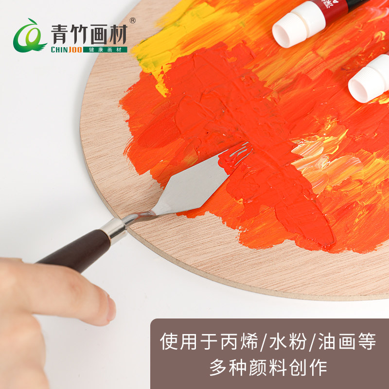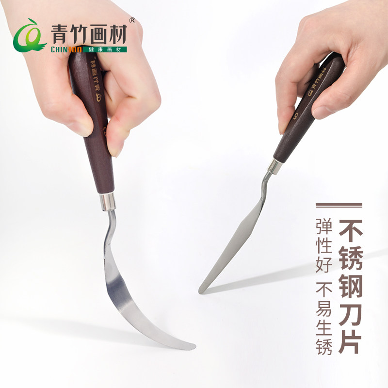 Bamboo art scraper Stainless steel gouache acrylic paint Oil painting color knife Pick knife blade leveling paint knife Oil painting scraper tip round head flat head art painting tools single set