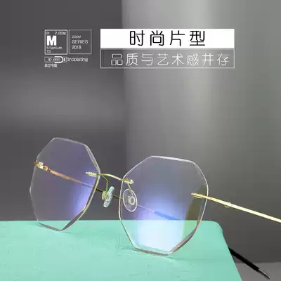 Pure titanium frameless myopia frame spectacle frame retro literary round super light men and women diamond cutting edge shake sound small red book