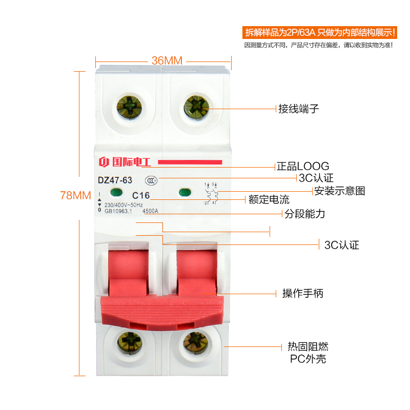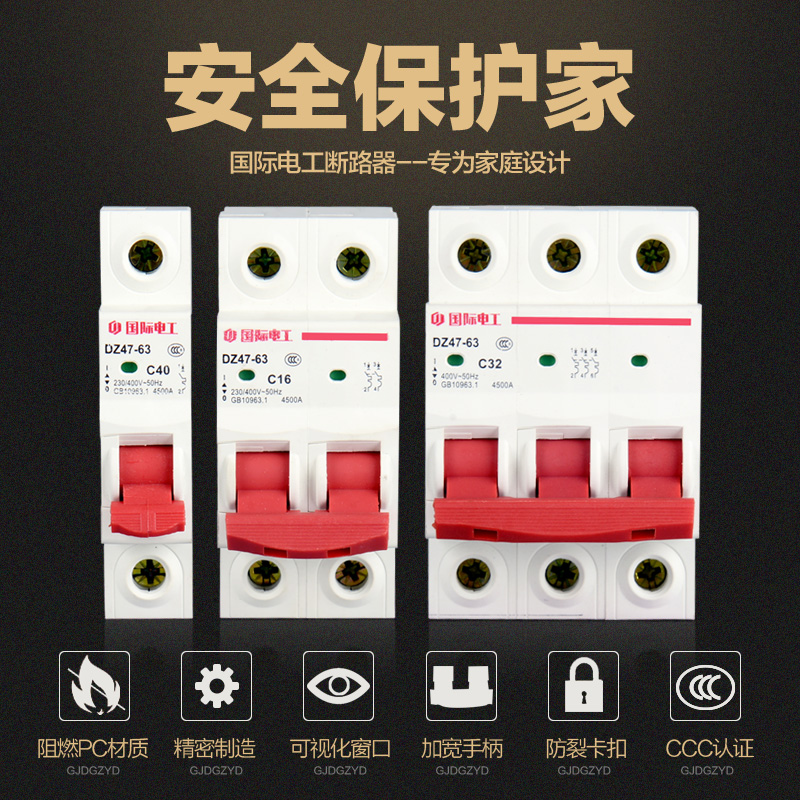 International electrician Small circuit breaker leakage protector DZ47-63A protection electric gate home total open air switch