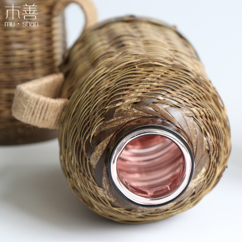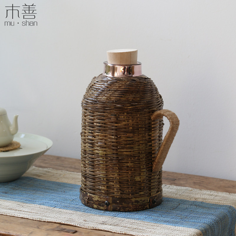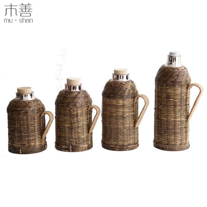Bamboo Woven Kettle Warm Pot Water Bottle Shell Handmade Hot Water Bottle Bamboo Thermos Water Bottle Old Fashioned Insulated Bottle Kettle Tea