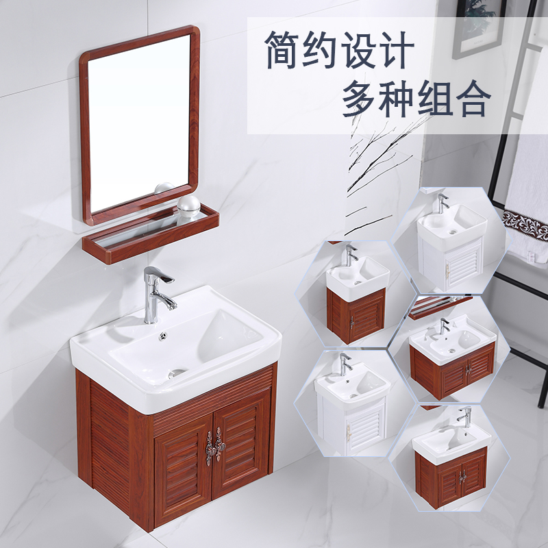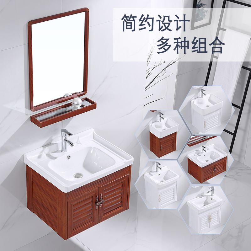 60 Wide Small Household Type Washbasin Toilet Bath Room Cabinet Combo Mirror Cabinet Home Simple Wall-mounted Washbasin Ceramic-Taobao