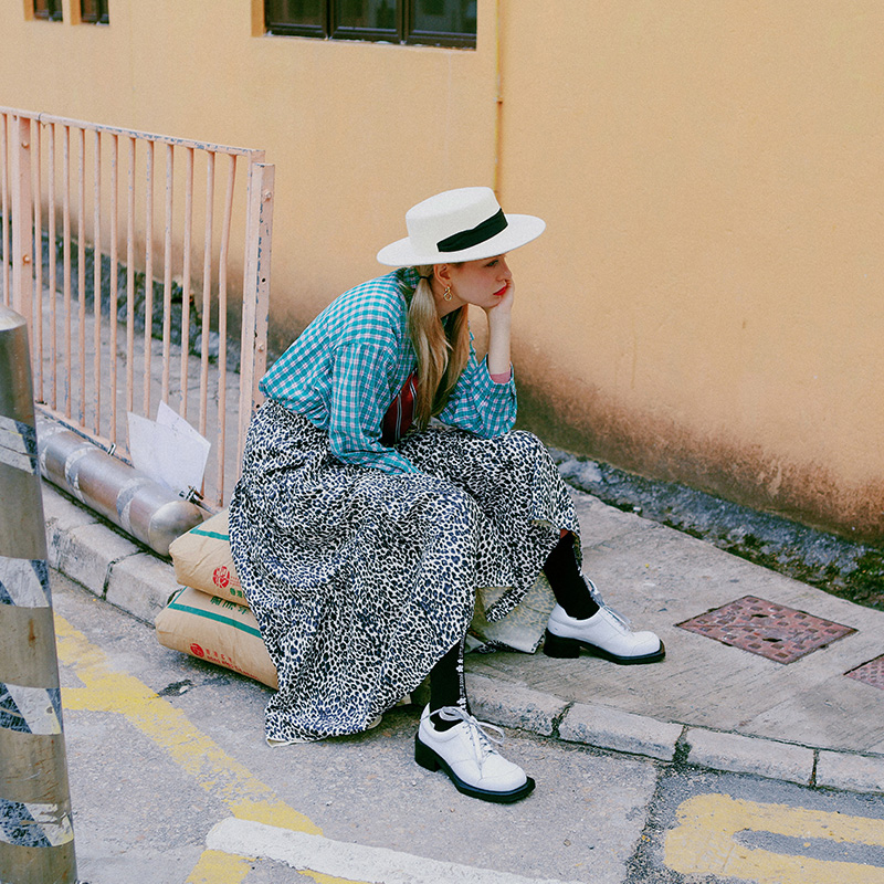 Littlegood spring new products retro unique square head design small leather shoes women's British mid-heel small single shoes comfortable