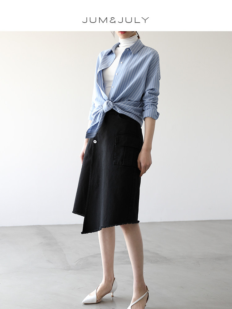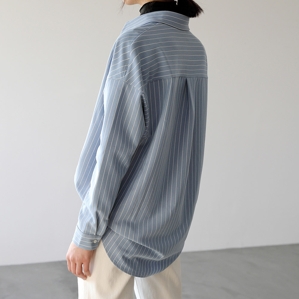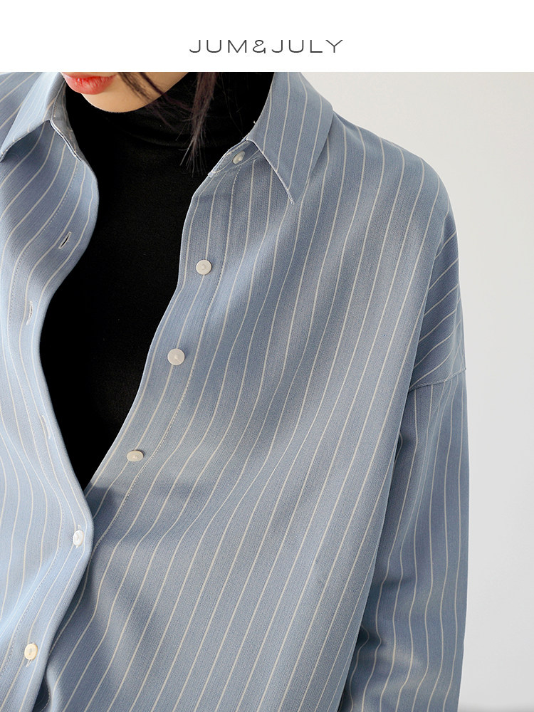 New Autumn Clothing Blue Striped Shirt Woman Design Sensation Small Crowdshirt Loose Korean version Heart machine jacket port Wind