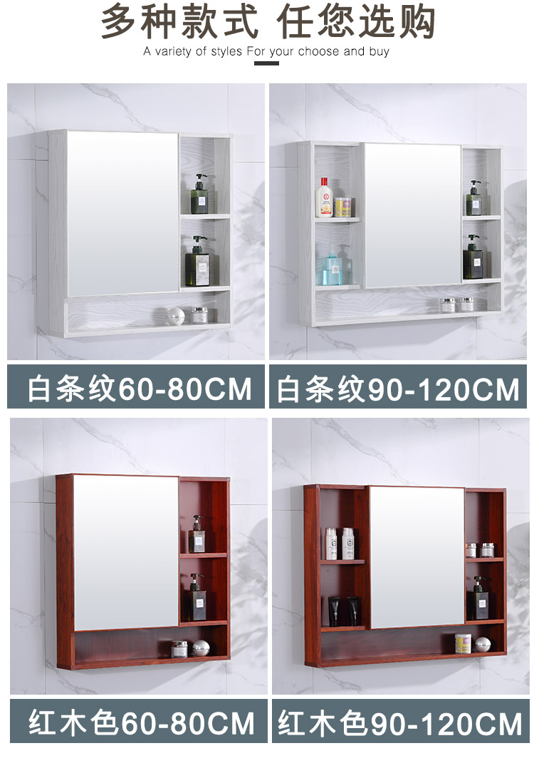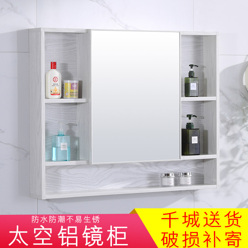 Brief Space Aluminum Makeup Room Mirror Cabinet Toilet Makeup Mirror Subbathroom Wall-mounted Wall Style With Shelf Storage Mirror box