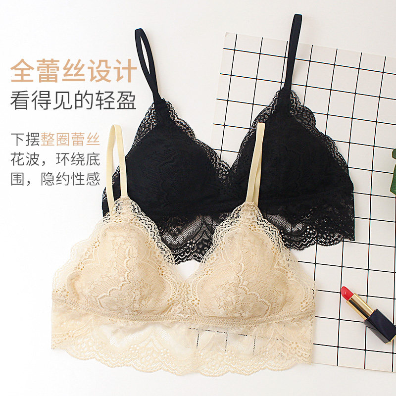 New silk steel-free bra triangle thin lingerie female French lace sexy small bra girl bra summer