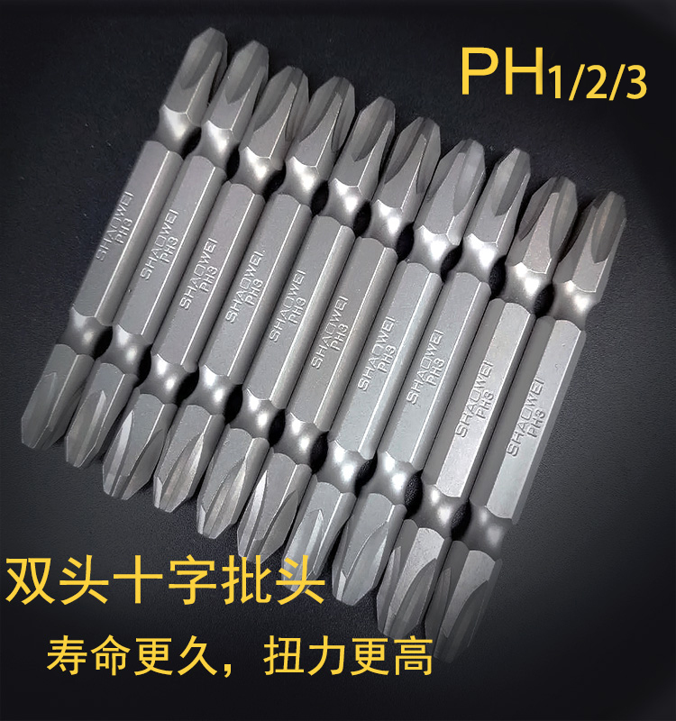 Shaowei Taiwan S2 double-headed cross batch mouth 300mm magnetic pneumatic electric batch head electric drill pneumatic screwdriver mouth