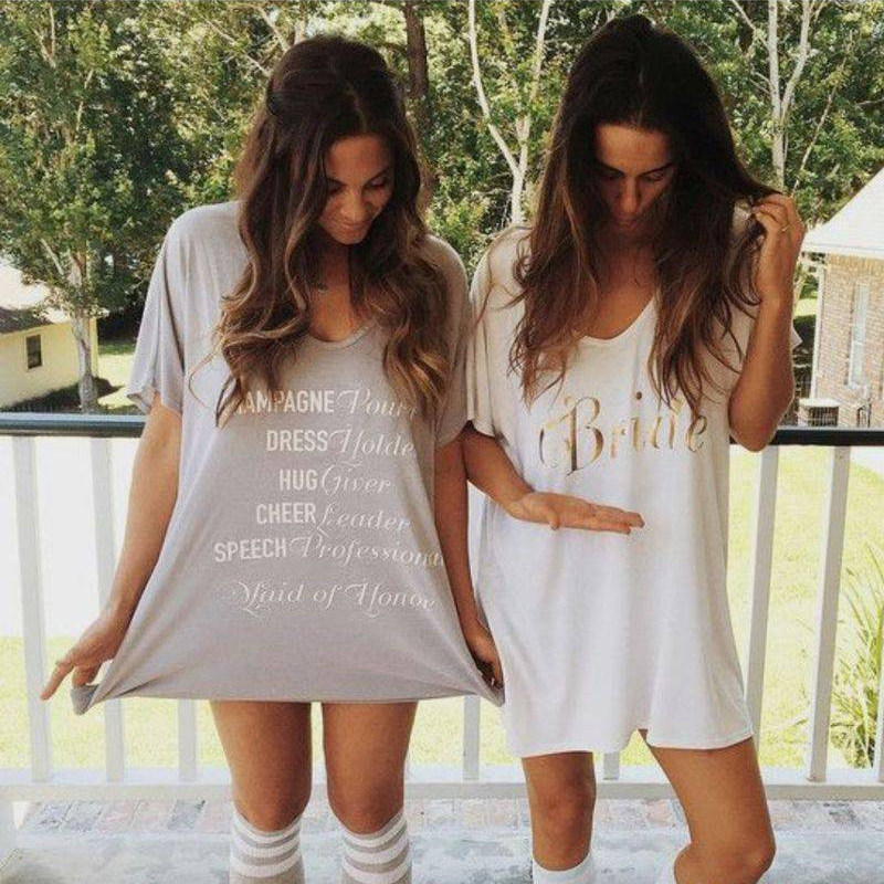 Before marriage, bridesmaids, bridesmaids, girlfriends, party, team pajamas, custom name loose T-shirt morning gown women